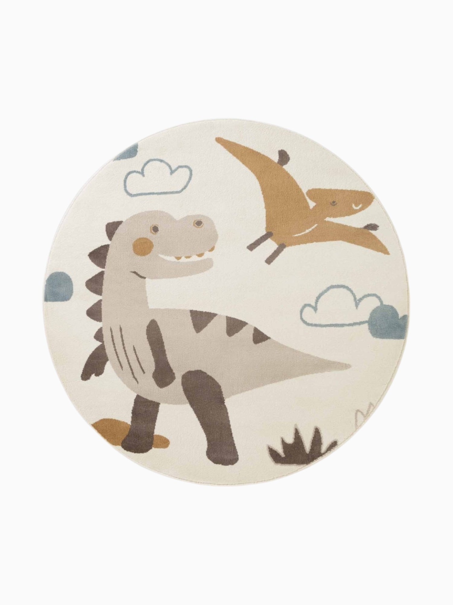 Kinderteppich Dinosaurier Beige Creme Rund