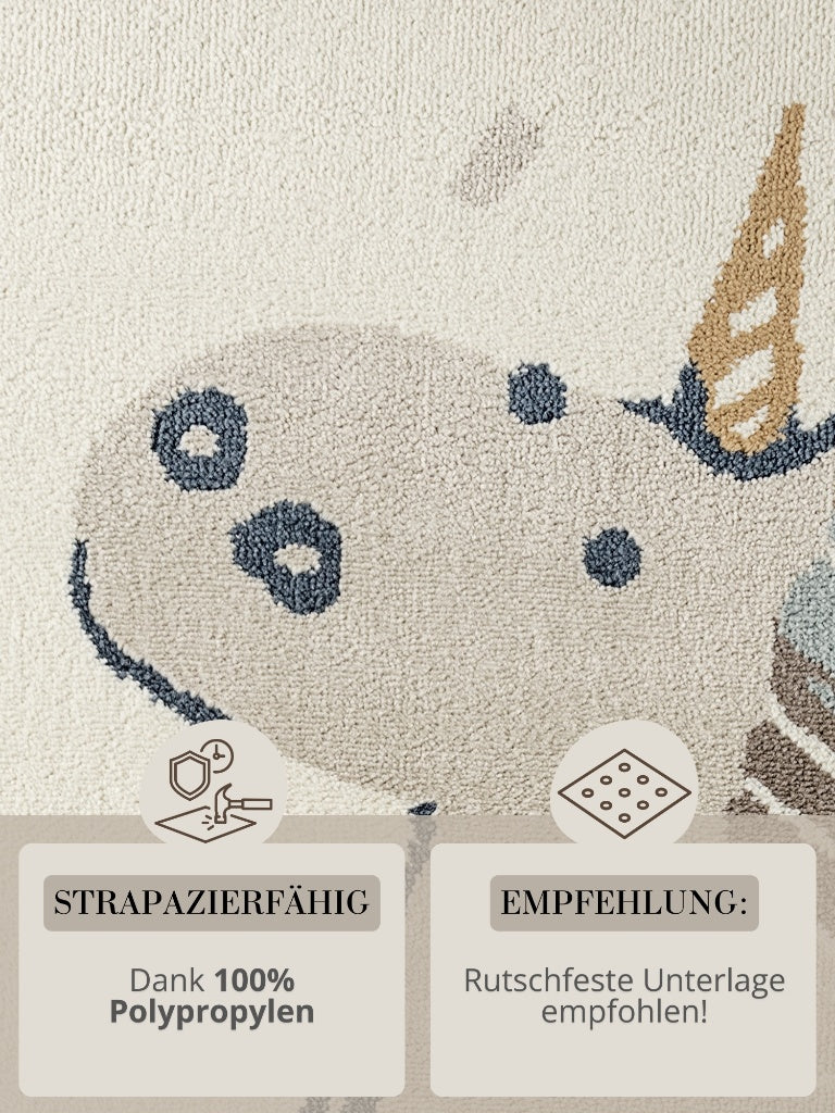 Kinderteppich Einhorn Creme