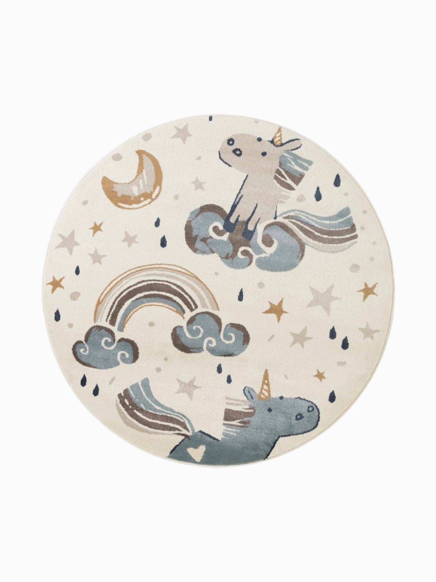 Kinderteppich Einhorn Creme Rund