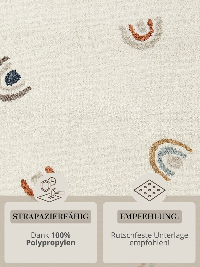 Kinderteppich Regenbogen Gepunktet Creme