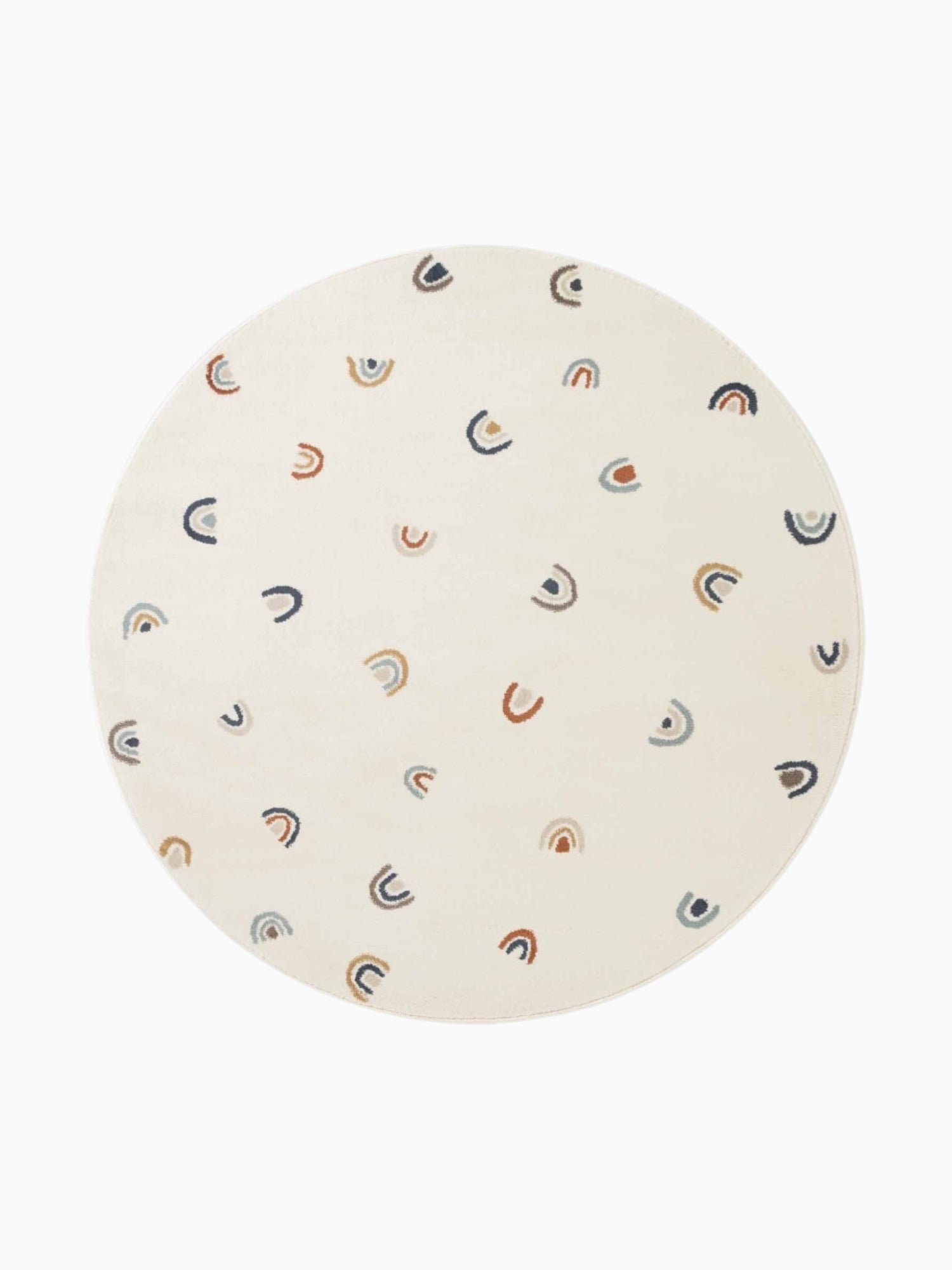 Kinderteppich Regenbogen Gepunktet Creme Rund