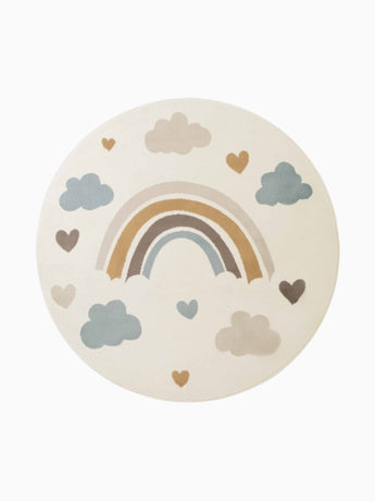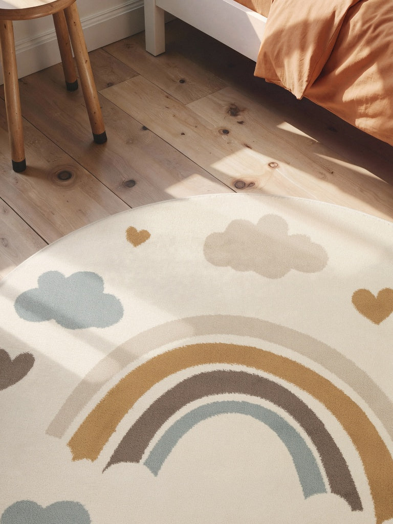Kinderteppich Regenbogen Wolken Creme Bunt Rund