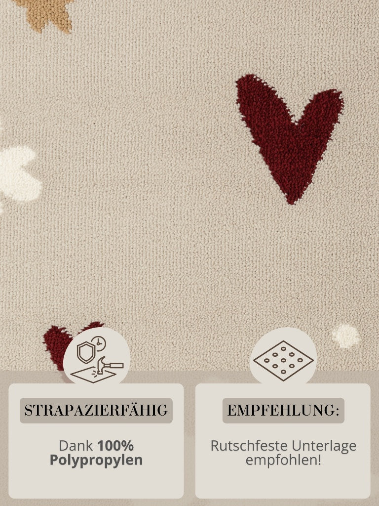 | Pflegehinweise | Flecken sofort entfernen , Leicht zu reinigen , Regelmäßig saugen , Ausklopfen |