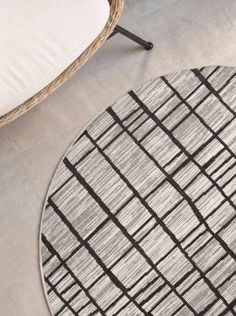 Ted Baker Outdoor Teppich Crouch Schwarz/Weiß Rund