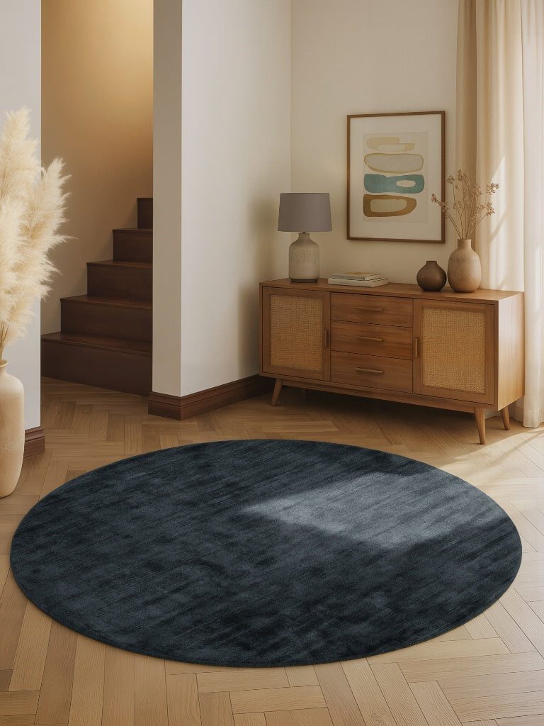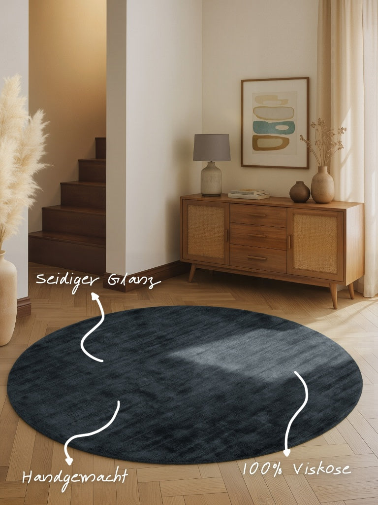 Handgewebter Viskoseteppich Jane Schwarz Rund