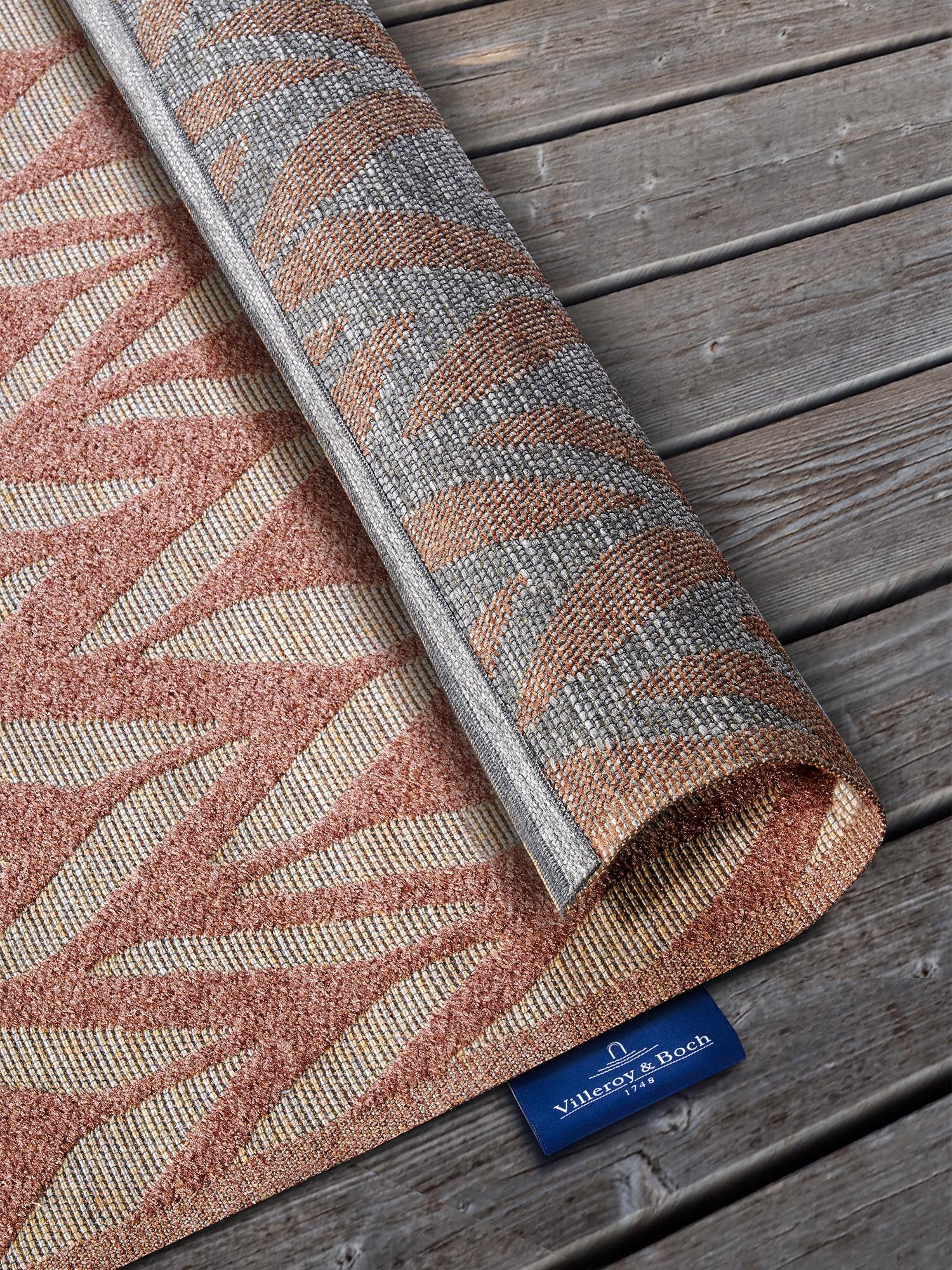 Die Villeroy & Boch 1883 Kollektion lässt sich vielseitig mit unterschiedlichen Einrichtungsstilen kombinieren. Die modernen Designs harmonisieren in In- sowie Outdoor-Bereichen und verleihen ein schönes Flair. Das Flachgewebe strahlt in schlichten Farben. Der Teppich ist wetterfest und kann unbedenklich in Außenbereichen ausgelegt werden, aber auch im Innenbereich ist er ein echter Hingucker. Genießen Sie den Komfort und die stilvolle Ästhetik des Villeroy & Boch In- und Outdoor Teppichs aus 100% recyceltem Polyester.