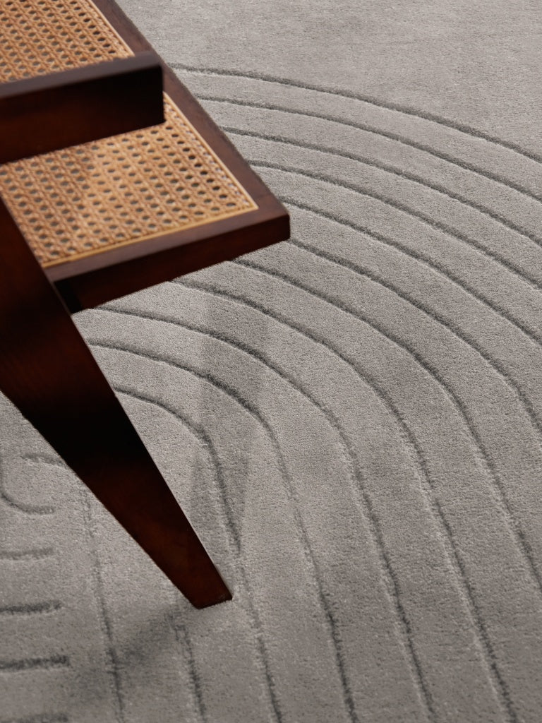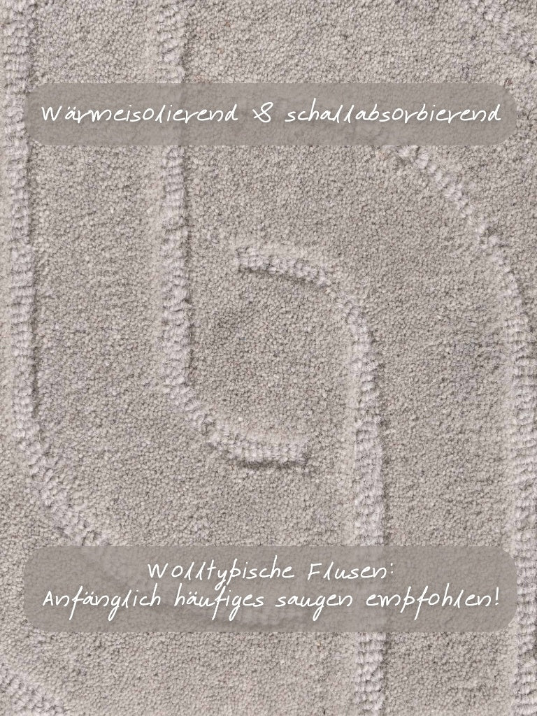 Der Teppich Arcura vereint robustes Naturmaterial mit einem kunstvollen, geometrischen Design, das jedem Raum eine stilvolle und moderne Atmosphäre verleiht. Dank seiner klassischen, einfarbigen Optik fügt sich Arcura harmonisch in jede Einrichtung ein und setzt dabei dezente Akzente, die Ihr Zuhause besonders einladend wirken lassen. Handgetuftet aus natürlicher Wolle besticht Arcura nicht nur durch seine Langlebigkeit und Pflegeleichtigkeit, sondern bietet Ihnen zudem einen hohen Wohnkomfort: Der Teppich wirkt schallabsorbierend und wärmeisolierend, was für ein angenehmes Raumklima sorgt. Sein symmetrischer Hoch-Tief-Effekt verleiht ihm eine besondere Struktur, die sowohl optisch als auch haptisch überzeugt. Typische Flusenbildung, die bei Wollteppichen anfänglich auftreten kann, nimmt durch die regelmäßige Nutzung deutlich ab. Der 1,5 cm hohe Flor sorgt für ein weiches, angenehmes Laufgefühl. Durch das Spiel von Licht und Faserrichtung kann sich die Farbwirkung leicht verändern, wodurch Arcura eine lebendige und natürliche Ausstrahlung erhält. Der anfängliche Naturgeruch verfliegt schnell, sodass Sie sich schon bald uneingeschränkt an Ihrem neuen Teppich erfreuen können. Mit Arcura entscheiden Sie sich für mehr als nur einen Teppich – Sie wählen ein einzigartiges Kunstwerk aus hochwertiger, natürlicher Wolle, das Ihrem Zuhause Wärme, Komfort und zeitlose Eleganz schenkt. Dieses besondere Stück verwandelt Ihre Räume in ein Wohlfühlparadies und begleitet Sie mit seiner stilvollen Ausstrahlung über viele Jahre. Gönnen Sie sich diesen außergewöhnlichen Begleiter und erleben Sie, wie Arcura Ihrem Zuhause eine ganz persönliche Note verleiht.