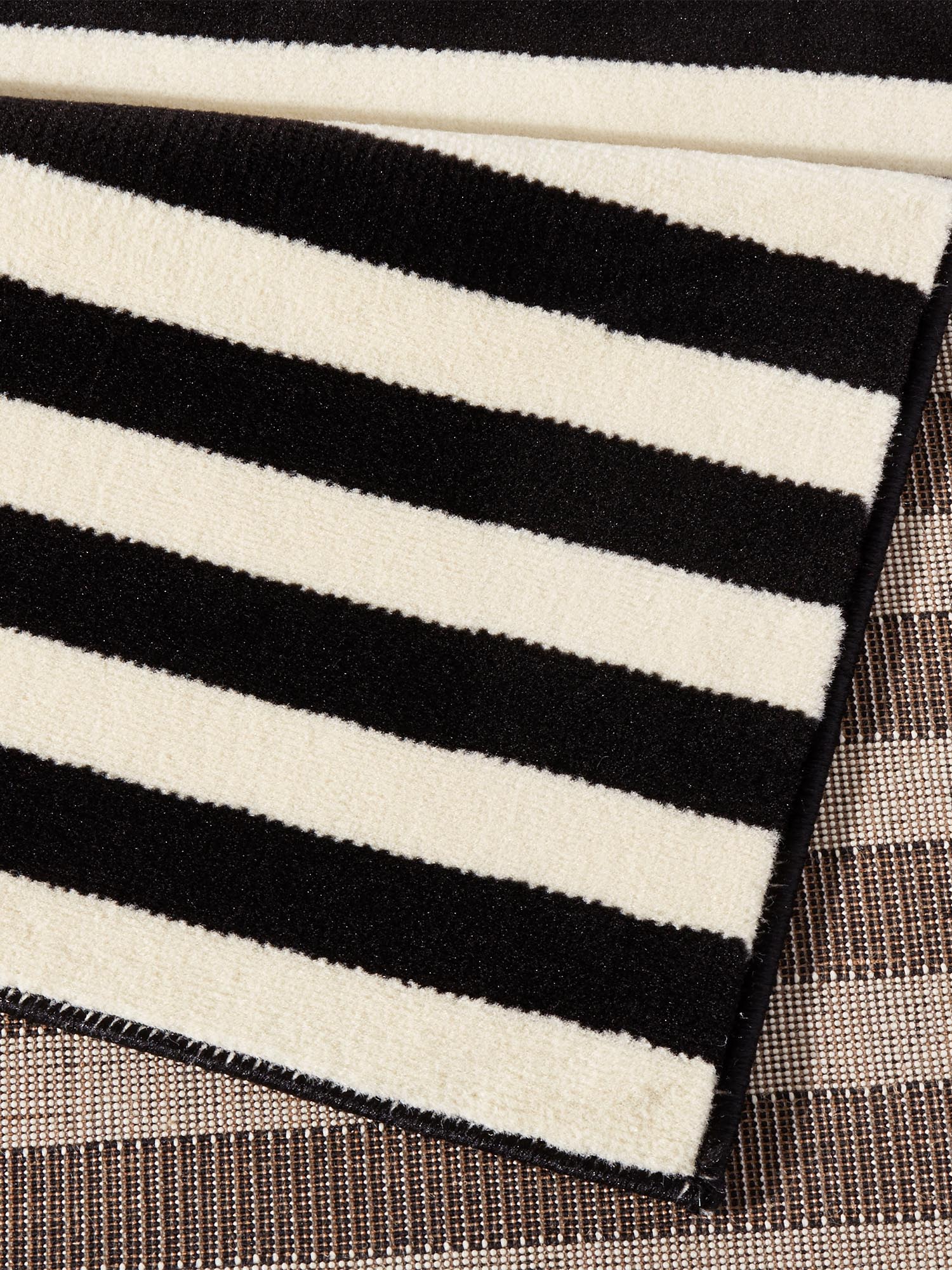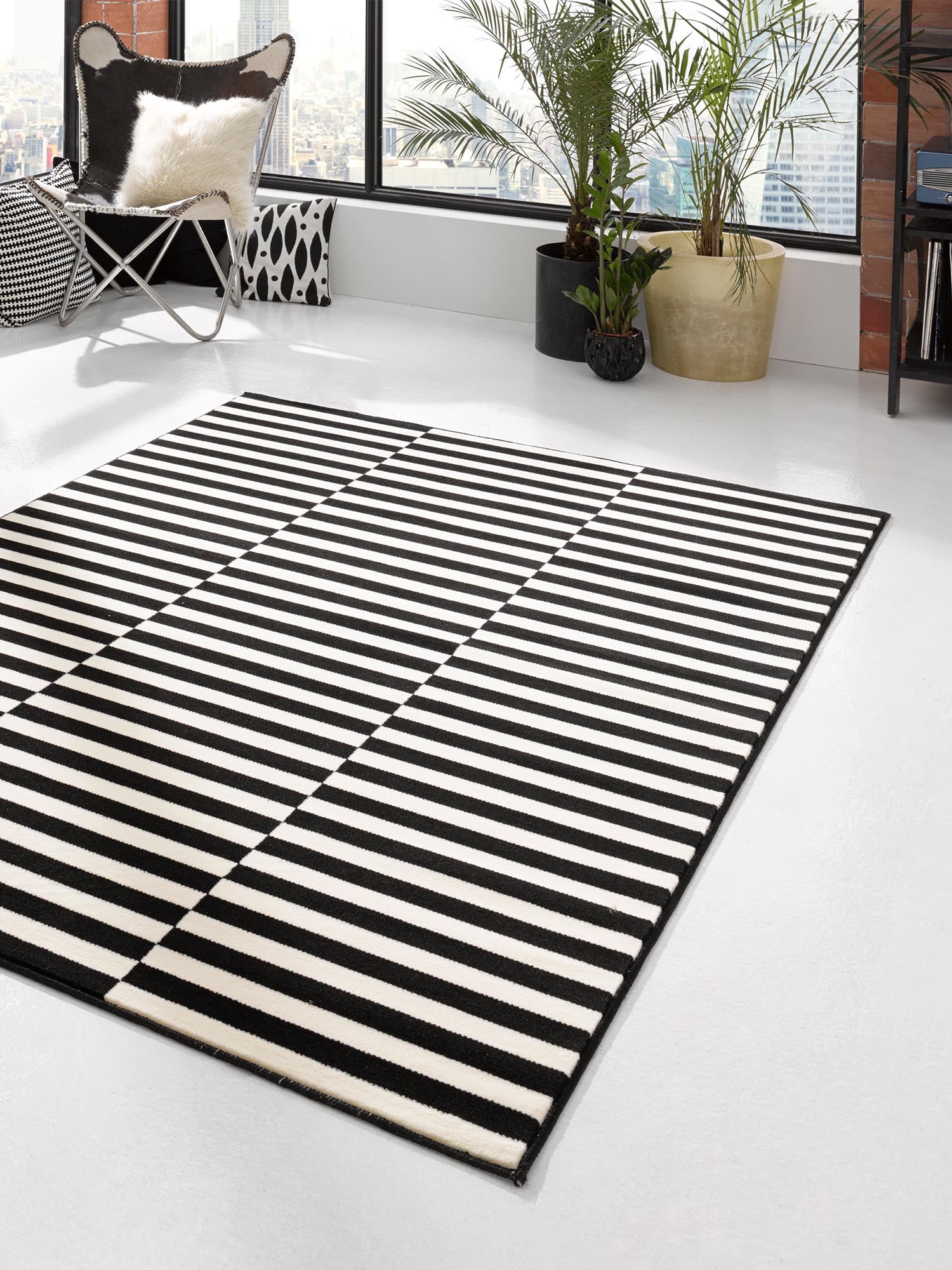 Moderner Blickfang: Der gestreifte Teppich Panel von Hanse Home setzt mit seinem klaren Schwarz-Weiß-Streifendesign der Teppich Panel moderne und stilvolle Akzente in jedem Wohnraum. Das zeitlose Muster vereint minimalistischen Chic mit harmonischen Farben und lässt sich so perfekt in unterschiedlichste Einrichtungsstile integrieren – ob skandinavisch, urban oder klassisch-modern. Ob als markanter Blickfang mitten im Raum oder als elegantes, abrundendes Element im Wohnkonzept: Der Kurzflorteppich wird schnell zum Highlight in Wohnzimmer, Schlafzimmer oder Flur. Hergestellt aus hochwertigem Polypropylen überzeugt er nicht nur durch Strapazierfähigkeit und Langlebigkeit, sondern ist auch besonders pflegeleicht. Dank seiner Eignung für Fußbodenheizungen bleibt er zudem das ganze Jahr über angenehm warm und gemütlich. Setzen Sie auf modernes Design und zeitlose Eleganz mit dem gestreiften Teppich Panel von Hanse Home.
