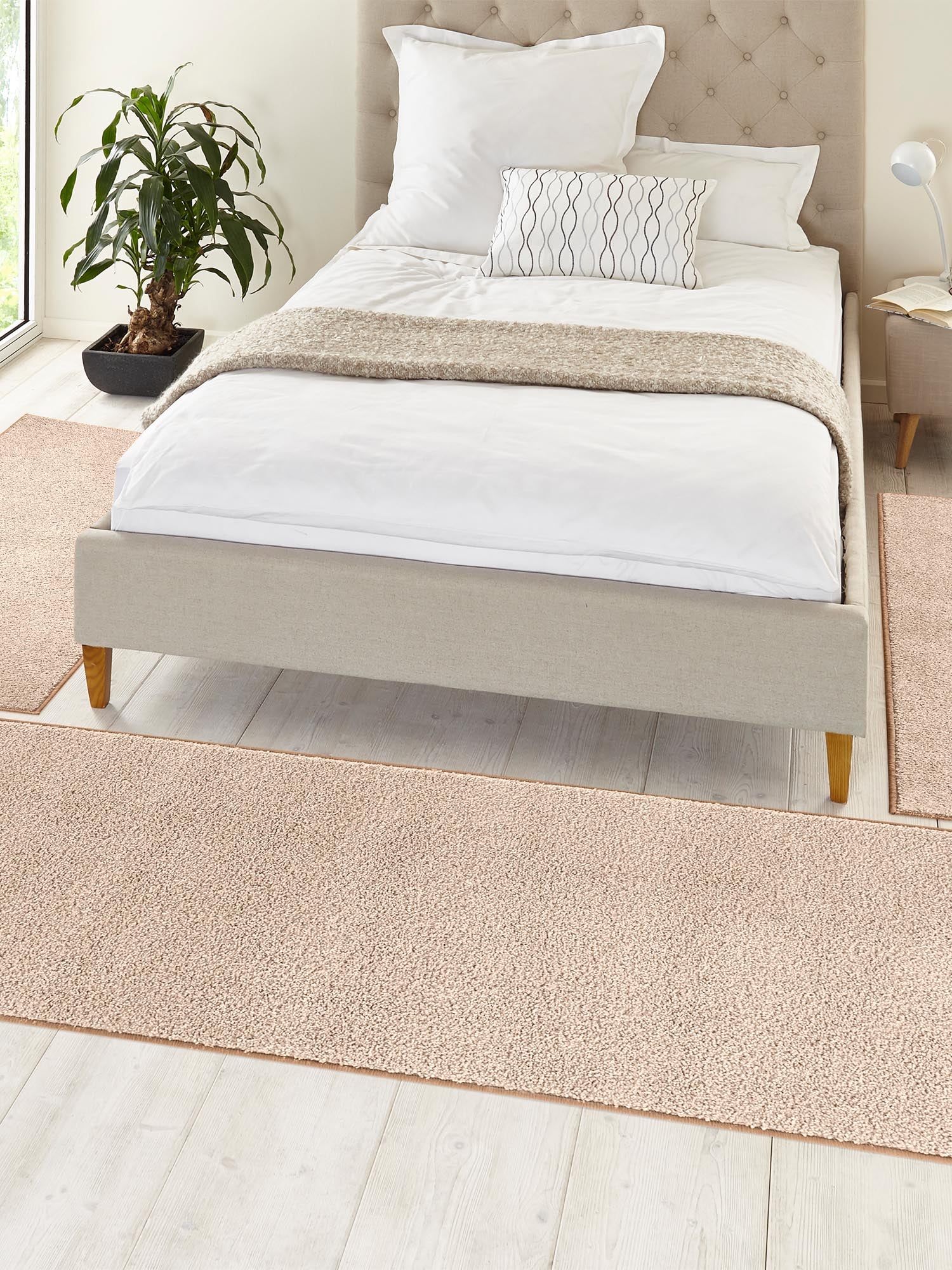 Velours Teppich Pure Beige Bettumrandung