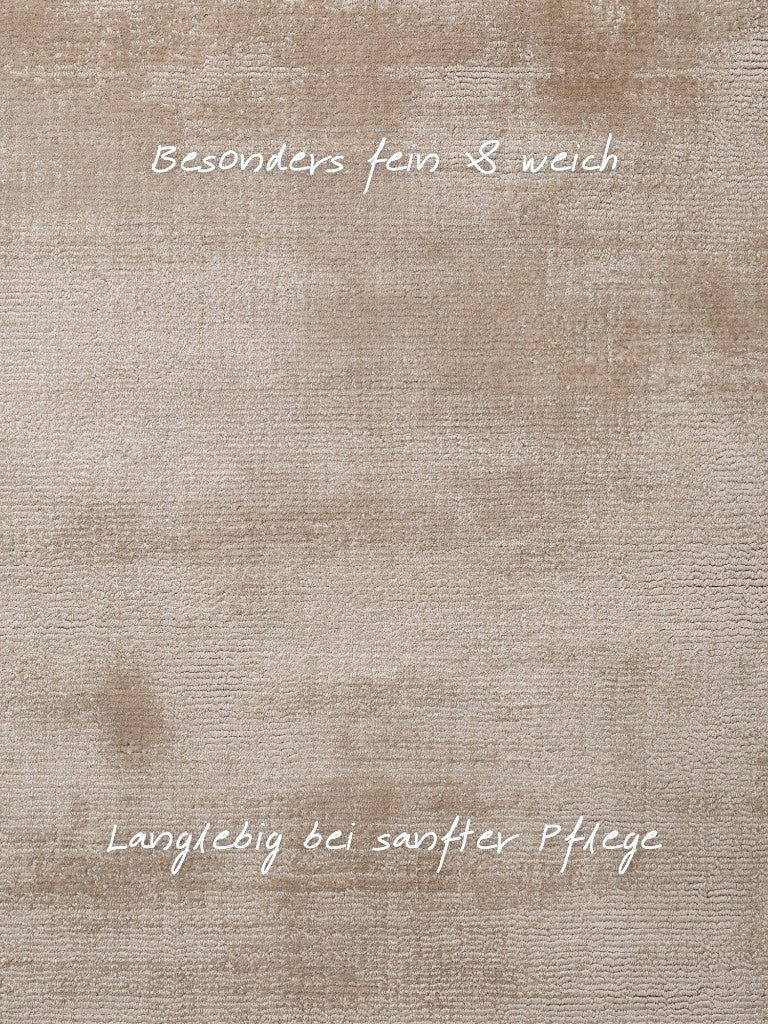 Teppich „Jane“ von vikosa – Stilvoll wohnen mit Glanz & Gefühl. Wohlig weich, brillant schön, natürlich gedacht: „Jane“ ist mehr als nur ein Teppich. Er ist ein Statement für stilvolles Wohnen, ein Gefühl unter den Füßen, ein Hauch von Luxus im Alltag. Gefertigt aus edler Viskose und einem stabilen Rücken aus recycelter Baumwolle, begeistert „Jane“ mit einer außergewöhnlich weichen, flauschigen Haptik. Jeder Schritt auf ihm fühlt sich an wie ein sanftes Versprechen von Komfort. So ist der Viskoseteppich ideal für gemütliche Wohnbereiche wie Wohnzimmer, Schlafzimmer oder ruhige Rückzugsorte. Der von Hand gewebte Teppich überzeugt mit einem feinen, seidig schimmernden Glanz, der jeden Raum aufwertet. Je nach Lichteinfall spielt der Teppich mit brillanten Farbtönen und changiert zwischen hell und dunkel – ein Zauberspiel der Farben, das Ihre Einrichtung zum Strahlen bringt. Sein einfarbiges Design lässt sich mühelos kombinieren, ob modern, klassisch oder kreativ, „Jane“ passt sich an und verleiht jeder Einrichtung das gewisse Etwas. Die Farbbrillanz der Viskosefaser sorgt dabei für elegante Tiefe und Ausdrucksstärke. Und das Beste: Viskose ist nicht nur schön, sondern auch funktional. Die Faser bindet kaum Staub oder Allergene, ideal für alle, die Wert auf ein sauberes Wohnklima legen. Wichtig zu wissen: Viskose reagiert empfindlich auf Feuchtigkeit und eignet sich daher nicht für Bad oder Küche. Jane ist für alle die das Besondere lieben: Handgemacht, Weich und mit einem Hauch Magie.