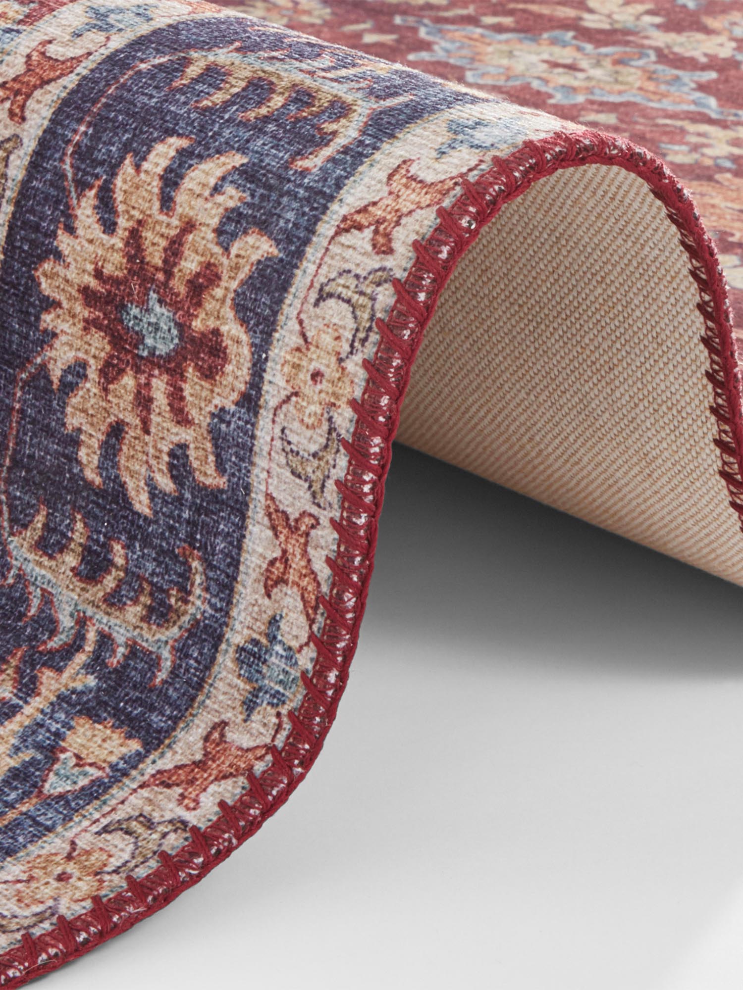 Vivana ist ein extravagantes Wohnaccessoire aus der Kollektion ASMAR von Hanse Home. Der maschinell hergestellte Teppich wird zum echten Hingucker in jedem Wohnbereich! Die hochwertige Verarbeitung und die sorgfältig ausgewählten Materialien überzeugen auf ganzer Linie. Das klassische, dennoch modern interpretierte Vintage-Design wird von kräftigen Farben unterstrichen und eine farblich angepasste Kettelung in der angesagten Handmade-Optik rundet das Gesamtbild perfekt ab. Das klassische und sehr detailreiche Design lässt sich zu unterschiedlichen Einrichtungen vielseitig kombinieren und selbst in einer modern eingerichteten Wohnung findet dieser Teppich seinen Platz. Dank dem verarbeiteten Polyester ist dieser Teppich besonders strapazierfähig und pflegeleicht, die meisten Flecken lassen sich leicht mit einem handelsüblichen Teppichschaum entfernen. Dazu sorgt das verarbeitete Material auch für eine samtige und weiche Oberfläche. Auch in Räumen mit einer Fußbodenheizung kann der Teppich problemlos ausgelegt werden. Bitte beachten Sie, dass die Farben auf Ihrem Monitor von den Original-Farbtönen abweichen können.
