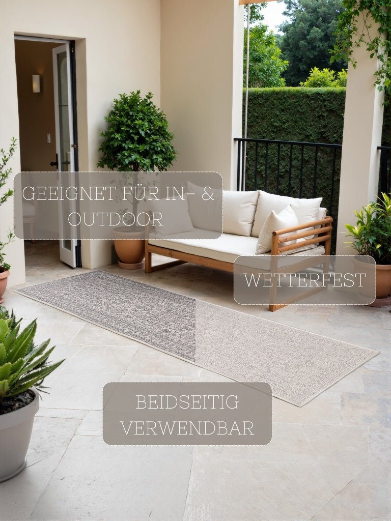 | Besonderheiten | Outdoor geeignet , Wendeteppich |