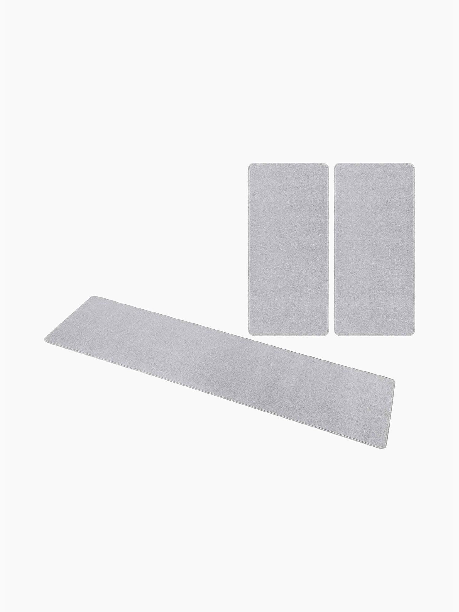 Einfarbiger Teppich Nasty Hellgrau Bettumrandung