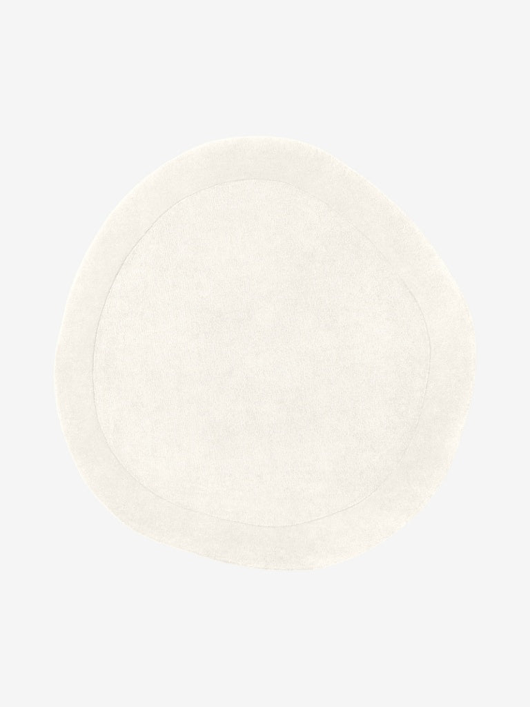 Handgefertigter Wollteppich Kari Creme/Weiß Organisch Rund