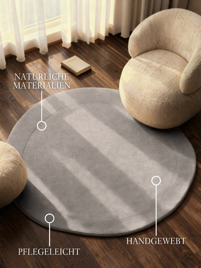 Handgefertigter Wollteppich Kari Grau Organisch Rund