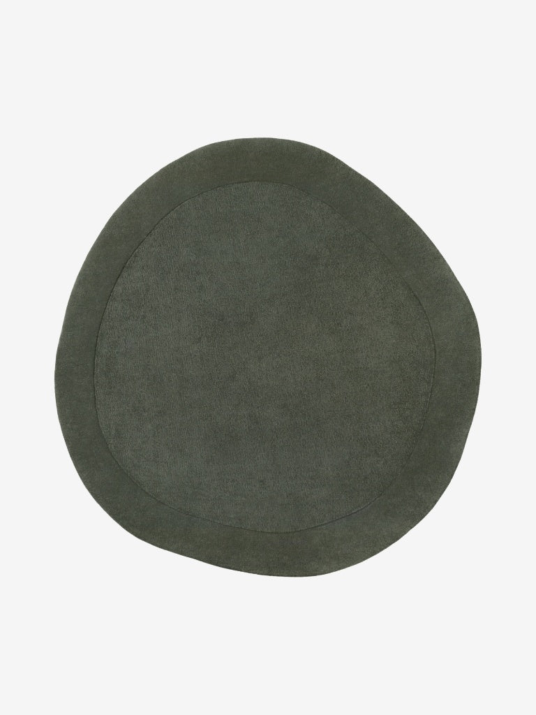 Handgefertigter Wollteppich Kari Grün Organisch Rund