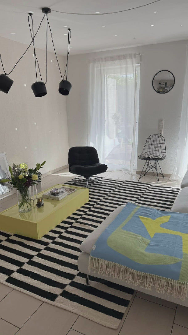 Handgefertigter Wollteppich Donna Schwarz/Weiß