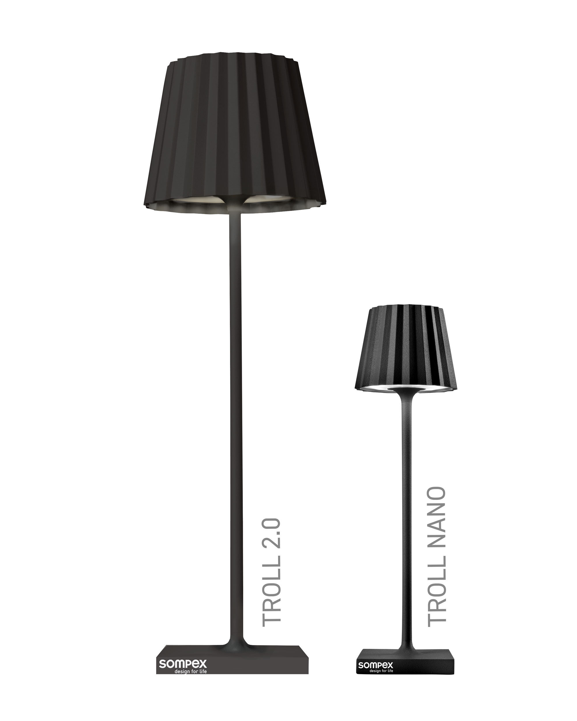 Die TROLL 2.0 begeistert mit ihrem einzigartigen Plissee-Schirm und bringt stilvolles Licht auf Balkon, Terrasse oder Wohnzimmertisch. Das Gehäuse besteht aus robustem Aluminium und ist in verschiedenen Farben und Mustern erhältlich. Durch die IP54-Zertifizierung eignet sich die Leuchte perfekt für den Einsatz im Innen- und Außenbereich, selbst bei wechselhaftem Wetter. Dank des leistungsstarken Akkus spendet sie bis zu 24 Stunden kabelloses Licht. Über den Touch-Sensor auf der Oberseite lässt sich die Helligkeit stufenlos regulieren, außerdem stehen zwei warmweiße Lichtfarben zur Auswahl. Die mitgelieferte Ladestation sorgt für ein einfaches und schnelles Aufladen.