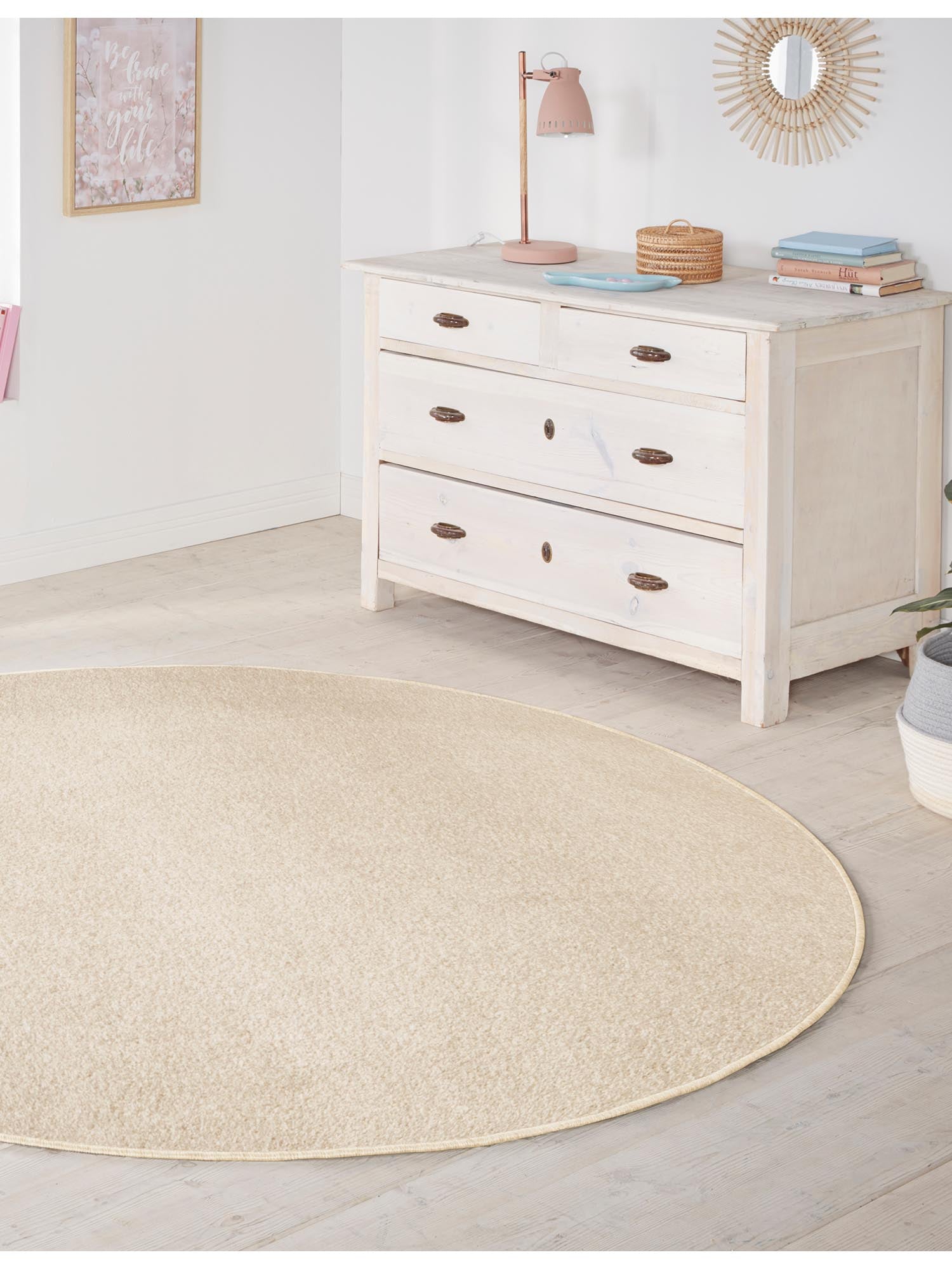 Einfarbiger Teppich Nasty Creme Rund