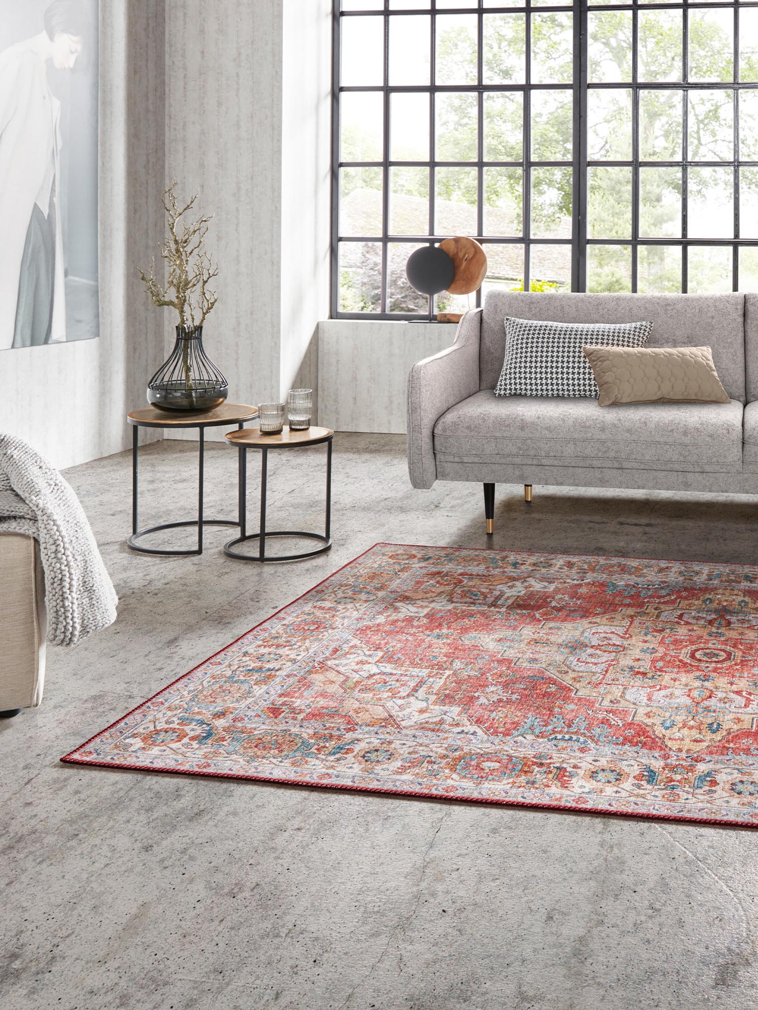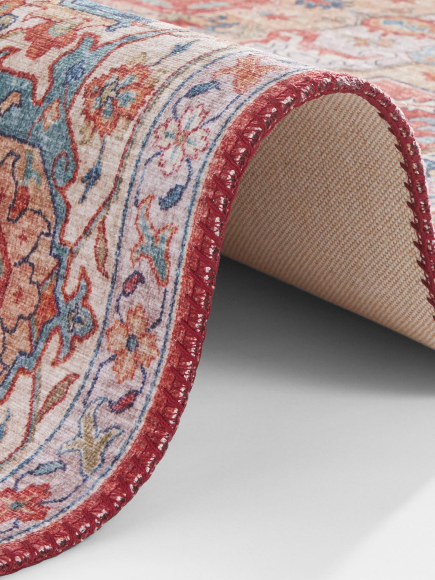 Sylla ist ein extravagantes Wohnaccessoire aus der Kollektion ASMAR von Hanse Home. Der maschinell hergestellte Teppich wird zum echten Hingucker in jedem Wohnbereich! Die hochwertige Verarbeitung und die sorgfältig ausgewählten Materialien überzeugen auf ganzer Linie. Das klassische, dennoch modern interpretierte Vintage-Design wird von kräftigen Farben unterstrichen und eine farblich angepasste Kettelung in der angesagten Handmade-Optik rundet das Gesamtbild perfekt ab. Das klassische und sehr detailreiche Design lässt sich zu unterschiedlichen Einrichtungen vielseitig kombinieren und selbst in einer modern eingerichteten Wohnung findet dieser Teppich seinen Platz. Dank dem verarbeiteten Polyester ist dieser Teppich besonders strapazierfähig und pflegeleicht, die meisten Flecken lassen sich leicht mit einem handelsüblichen Teppichschaum entfernen. Dazu sorgt das verarbeitete Material auch für eine samtige und weiche Oberfläche. Auch in Räumen mit einer Fußbodenheizung kann der Teppich problemlos ausgelegt werden. Bitte beachten Sie, dass die Farben auf Ihrem Monitor von den Original-Farbtönen abweichen können.