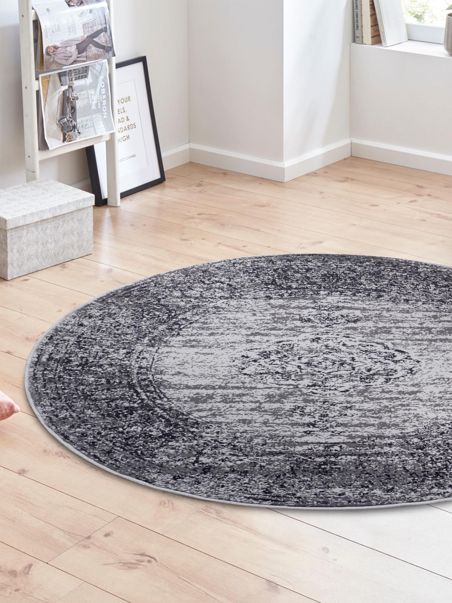 Vintage Teppich Méridional Anthrazit Rund