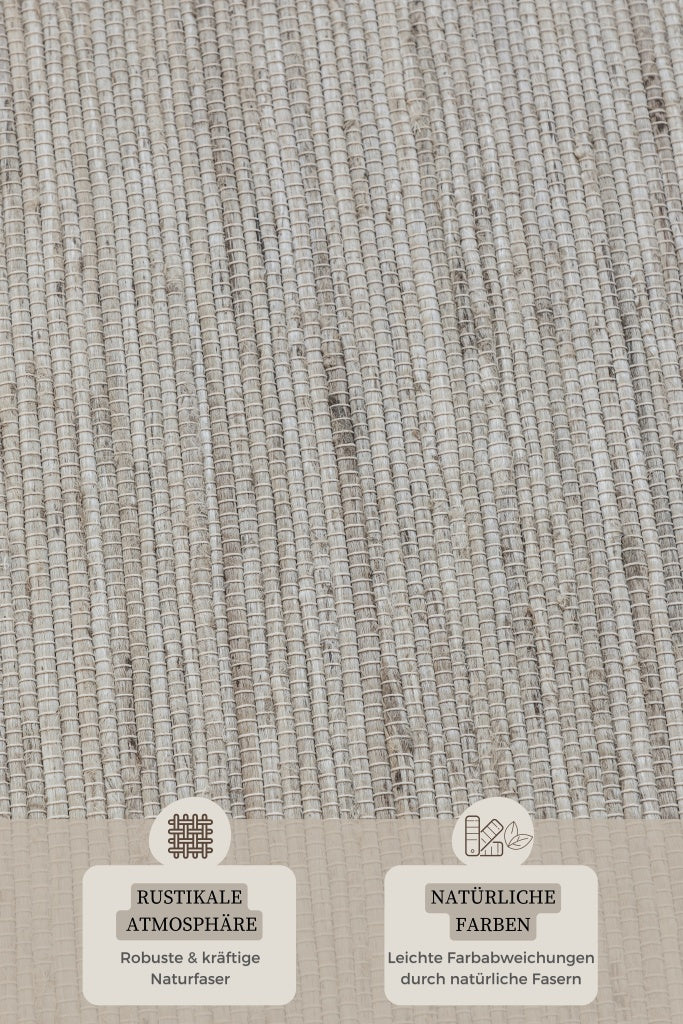 Diese ausgewogene Materialmischung vereint die natürliche Stärke von Jute, die Wärme und Weichheit von Wolle sowie die Hautfreundlichkeit und Pflegeleichtigkeit von Baumwolle. Das Ergebnis ist ein strapazierfähiger und zugleich angenehm weicher Teppich mit einer natürlichen, wohnlichen Ausstrahlung. Wie bei hochwertigen Naturfasern üblich, können anfangs einzelne Fasern austreten oder leicht fusseln - das ist völlig normal und legt sich mit der Zeit. Der Teppich sorgt für ein angenehmes Raumklima und bleibt bei richtiger Pflege lange schön und formstabil.