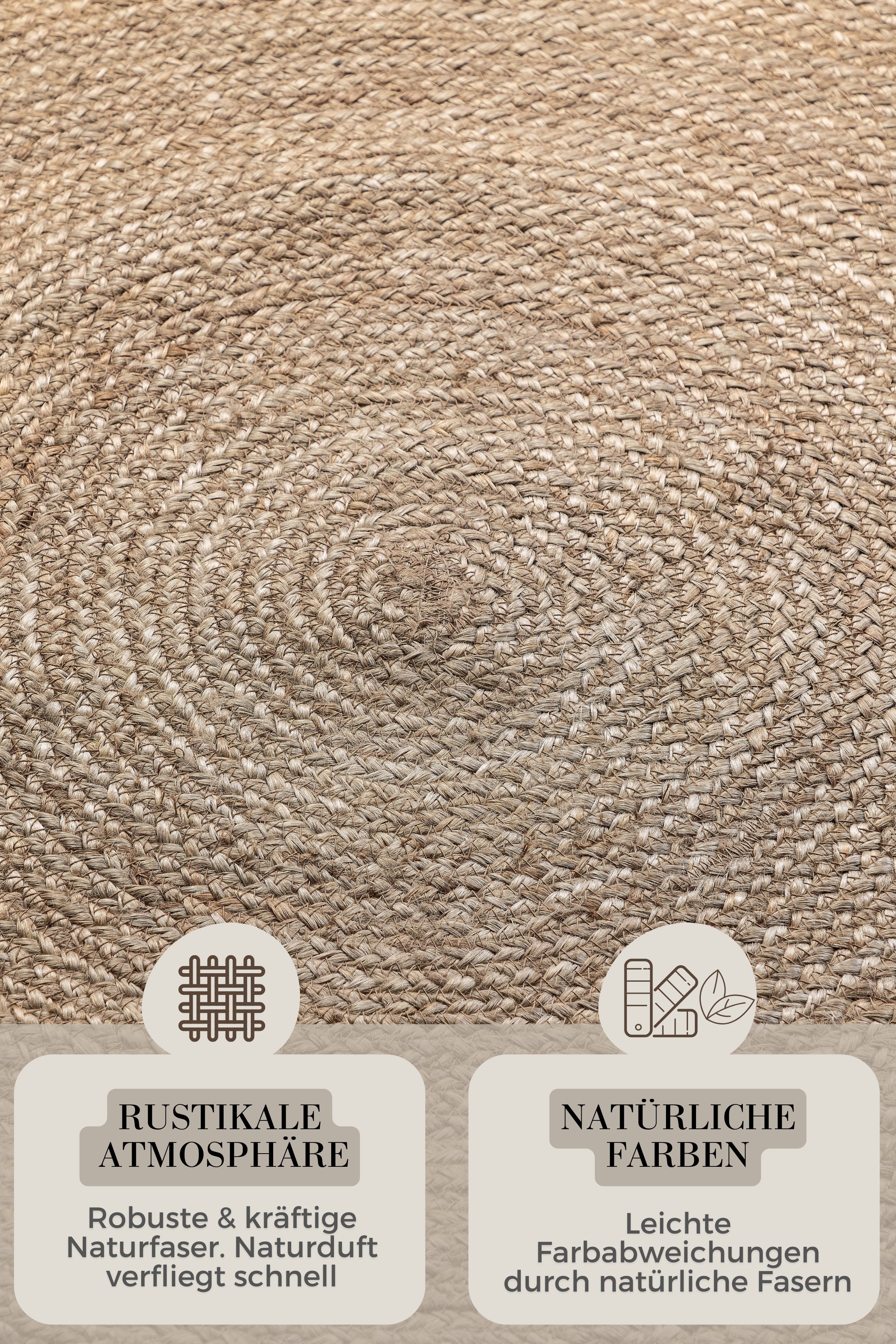 Juteteppich Rangpur Dunkelbeige Rund