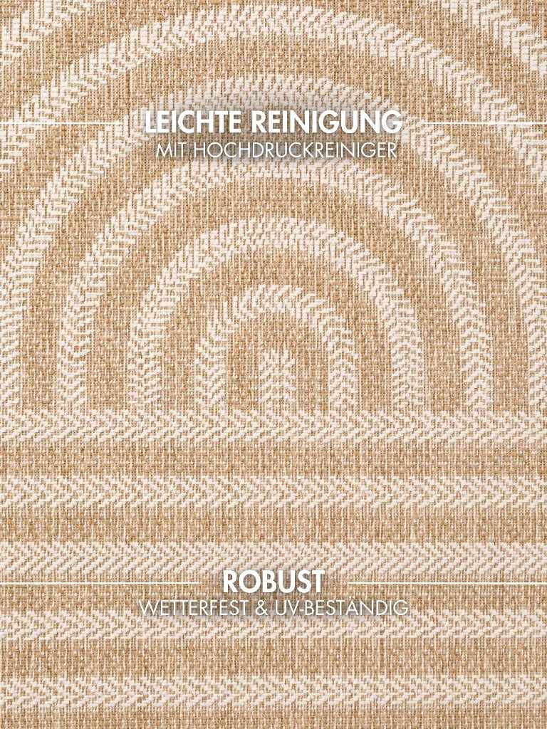 Die Teppiche der Ted Baker Haringey Kollektion verbinden modernes Design mit außergewöhnlicher Vielseitigkeit – perfekt für alle, die ihr Zuhause drinnen wie draußen stilvoll gestalten möchten. Ob im Wohnzimmer, auf der Terrasse oder dem Balkon: Diese modernen Teppiche schaffen überall eine einladende Atmosphäre und setzen durch ihre klassischen, aber dennoch ausdrucksstarken Farben besondere Akzente. Ihr kunstvoll modernes Muster verleiht jedem Raum eine elegante Note, während die beidseitige Nutzbarkeit Ihnen die Freiheit gibt, den Look jederzeit zu verändern, zwei Designs, ein Teppich, doppelt so viel Stil. Hochwertig in Europa gefertigt, sind die flach gewebten Teppiche robust, wetterfest und ideal für den täglichen Einsatz. Die strapazierfähigen synthetischen Fasern machen sie besonders pflegeleicht und langlebig – ganz gleich, ob Sonne, Regen oder der Familienalltag sie herausfordert. Mit der Haringey Kollektion holen Sie sich ein modernes Designhighlight in starken, zeitlosen Farben, das sich mühelos in jede Umgebung einfügt und drinnen wie draußen zum stilvollen Blickfang wird.