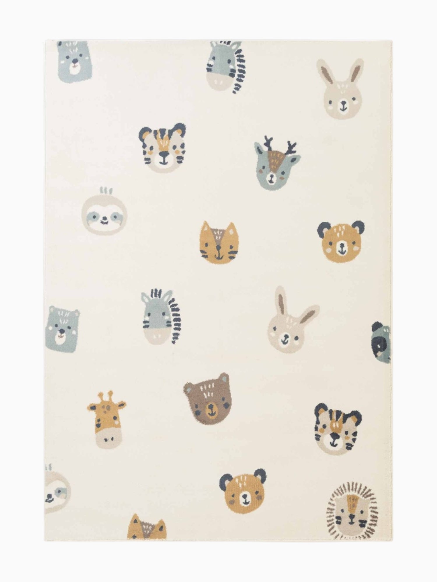 Kinderteppich Safari Tiere Gepunktet Creme Bunt